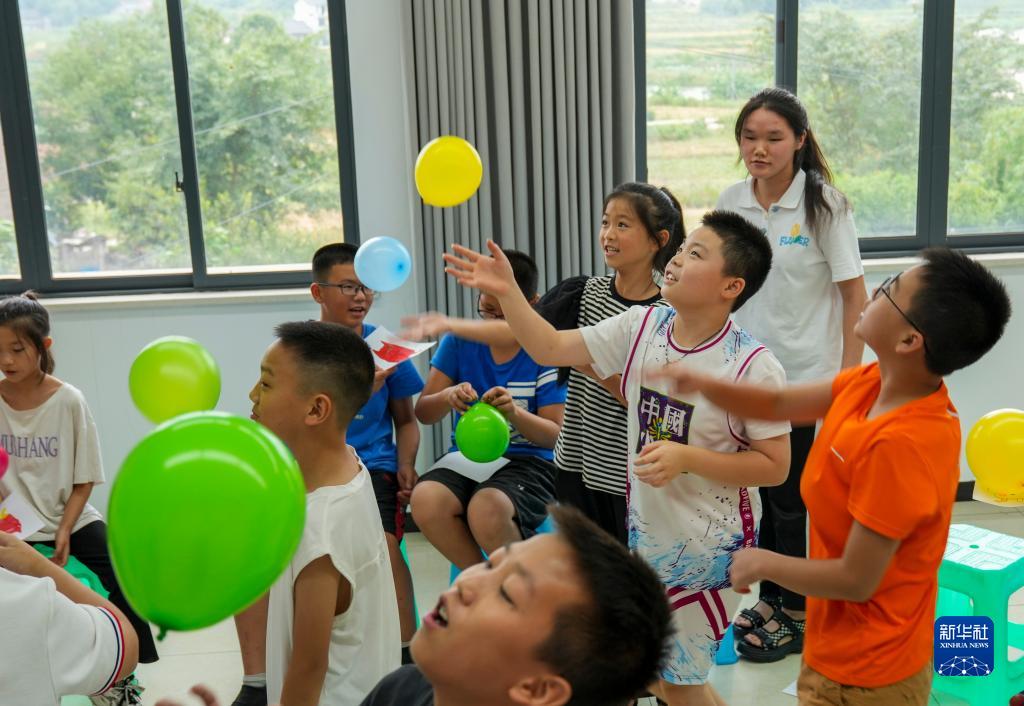 8月24日,在重慶市九龍坡區新民村村委會(huì )活動(dòng)室內,孩子們在心理咨詢(xún)師志愿者的指導下進(jìn)行互動(dòng)小游戲。新華社記者 劉潺 攝