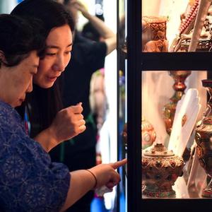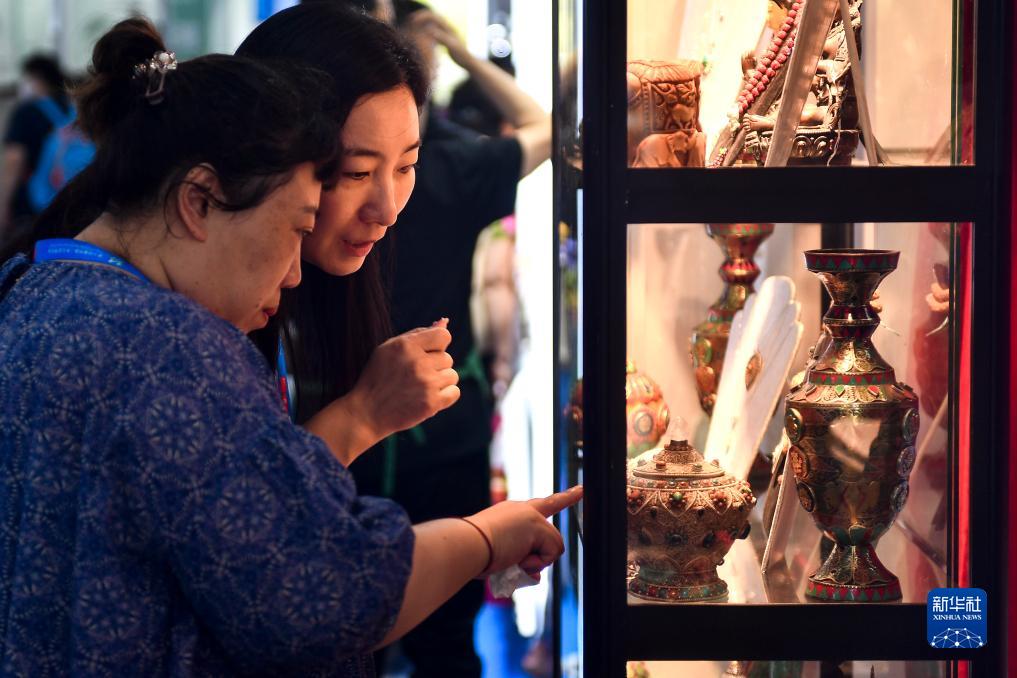 8月24日,參觀(guān)者在第十四屆中國—東北亞博覽會(huì )現場(chǎng)選購尼泊爾特色商品。