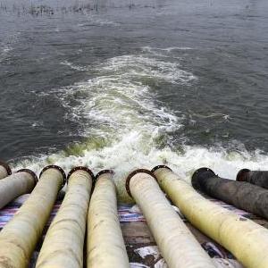 位于東淀蓄滯洪區大清河以南部分的天津市靜海區臺頭鎮、王口鎮積水嚴重。連日來(lái),天津市水務(wù)部門(mén)在大清河沿線(xiàn),調集一批大型抽水泵、移動(dòng)發(fā)電機、挖掘機等工程設備,24小時(shí)持續排除農田積水,為后續農民開(kāi)展田間管理、補種補救創(chuàng )造條件。