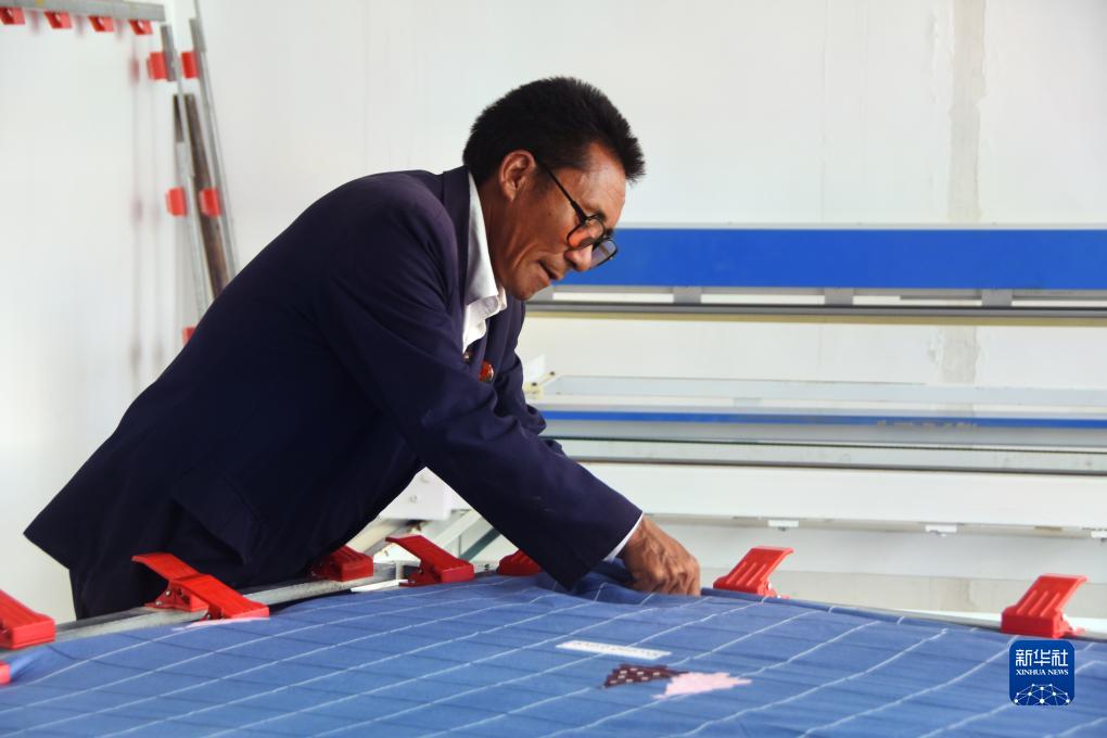 一位村民在制作羊毛被(8月24日攝)。