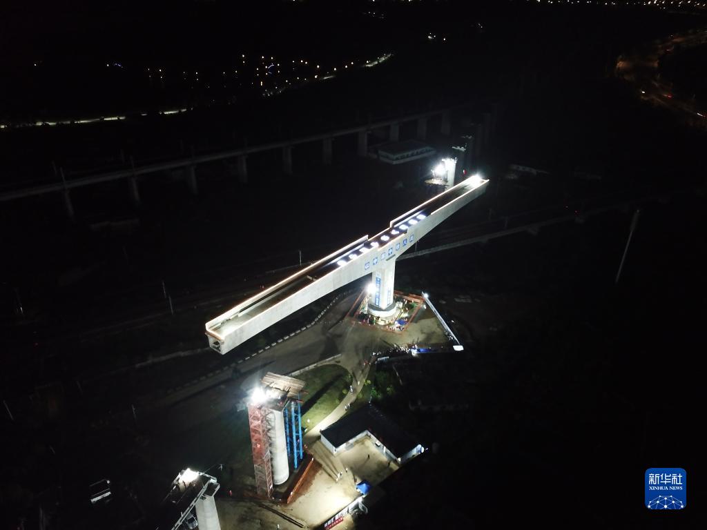 當日,由中鐵八局承建的貴南高鐵引入貴陽(yáng)樞紐鐵路尖坡寨特大橋在貴州省貴安新區成功轉體。據了解,此次轉體的混凝土箱梁長(cháng)約160米,重達7500噸,轉體角度約為41度,成功跨越已開(kāi)通運營(yíng)的滬昆高鐵既有線(xiàn)。