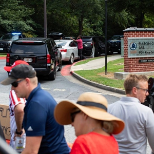 8月24日,警察在美國佐治亞州亞特蘭大市富爾頓縣拘留所外警戒。