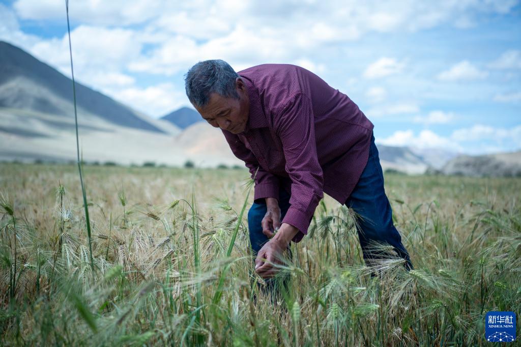 “自力更生,艱苦奮斗?!笔蔷妹览先说目陬^禪。家人常勸他不要再來(lái)地里勞作,他卻說(shuō):“雖然現在生活條件越來(lái)越好,但是我們不能忘本?!弊咴谇囡锢?,老人不時(shí)俯下身子查看青稞長(cháng)勢。有的青稞生長(cháng)狀況不佳,他便會(huì )皺起眉頭,與村民們商量解決辦法?!跋乱徊竭€是應該繼續提高機械化水平,讓青稞長(cháng)得更多更好?!本妹览先诵χ?zhù)說(shuō)。