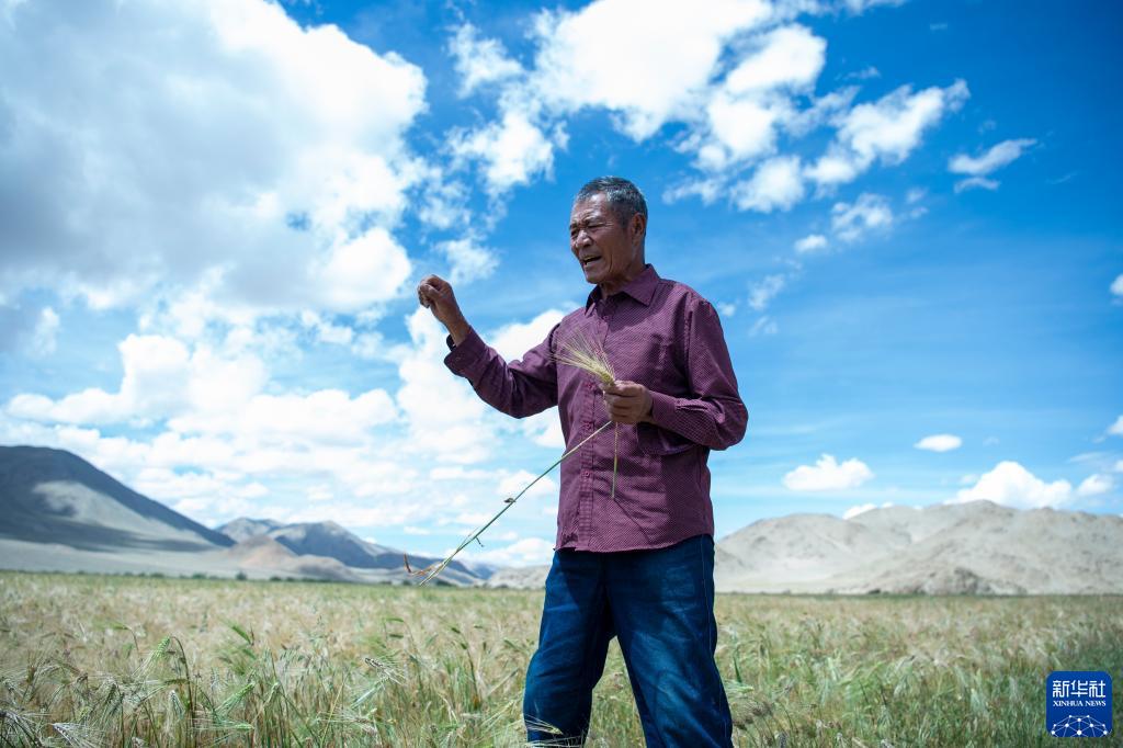 “自力更生,艱苦奮斗?!笔蔷妹览先说目陬^禪。家人常勸他不要再來(lái)地里勞作,他卻說(shuō):“雖然現在生活條件越來(lái)越好,但是我們不能忘本?!弊咴谇囡锢?,老人不時(shí)俯下身子查看青稞長(cháng)勢。有的青稞生長(cháng)狀況不佳,他便會(huì )皺起眉頭,與村民們商量解決辦法?!跋乱徊竭€是應該繼續提高機械化水平,讓青稞長(cháng)得更多更好?!本妹览先诵χ?zhù)說(shuō)。