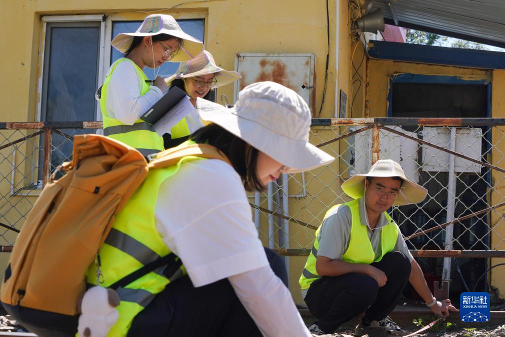 在黑龍江省雙鴨山市集賢縣的鐵路沿線(xiàn),部分勘察班組成員在鐵路既有線(xiàn)開(kāi)展測量作業(yè)(8月24日攝)。
