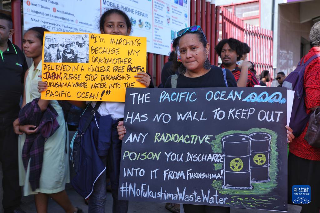當日,數百名斐濟民眾沿街游行,強烈抗議日本政府啟動(dòng)福島第一核電站核污染水排海,呼吁國際社會(huì )采取行動(dòng)保護太平洋生態(tài)和子孫后代的福祉。