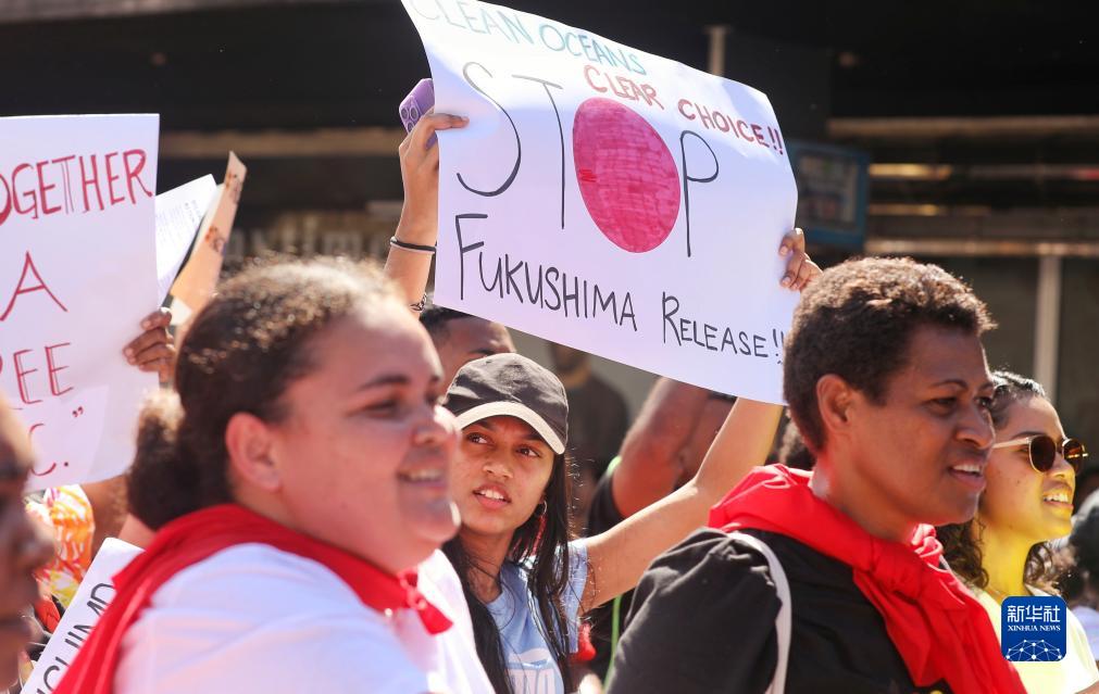 當日,數百名斐濟民眾沿街游行,強烈抗議日本政府啟動(dòng)福島第一核電站核污染水排海,呼吁國際社會(huì )采取行動(dòng)保護太平洋生態(tài)和子孫后代的福祉。