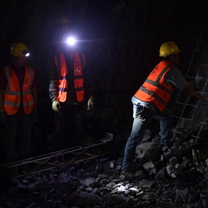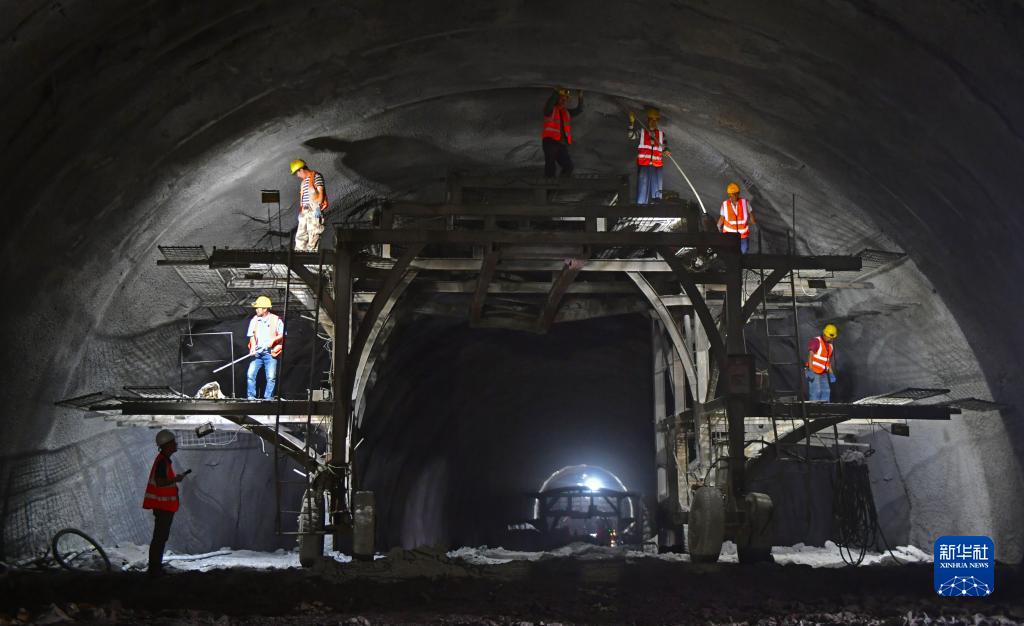8月25日,中鐵十九局施工人員在沈白高鐵新賓隧道內施工。