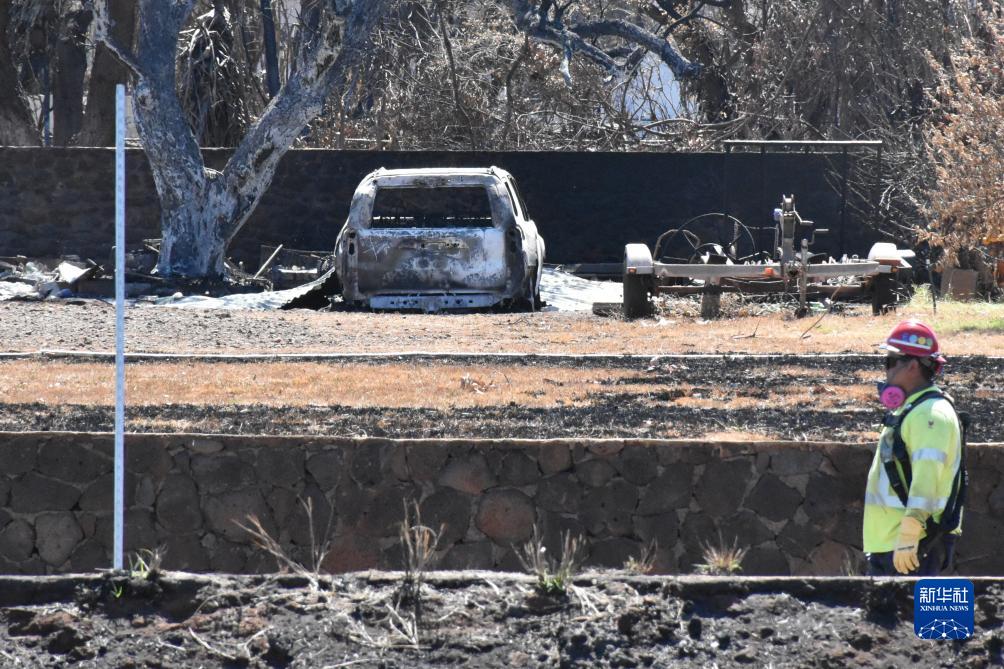 8月22日,工作人員在美國夏威夷州拉海納鎮進(jìn)行修復工作。