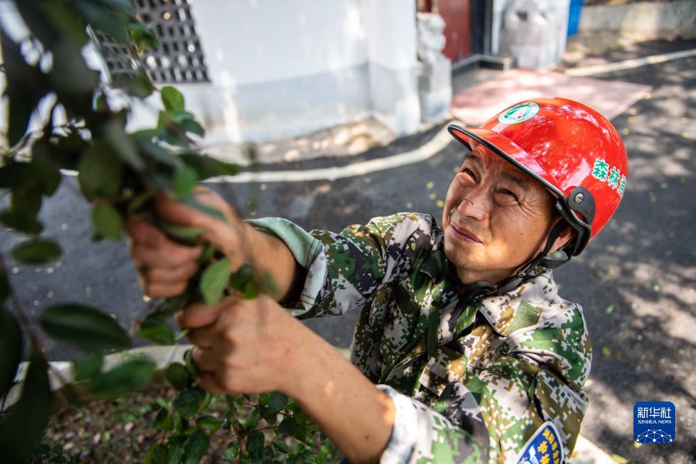 8月24日,在瀏陽(yáng)市金剛鎮丹桂村,黃蔚谷處理纏繞在古樹(shù)上的藤蔓。