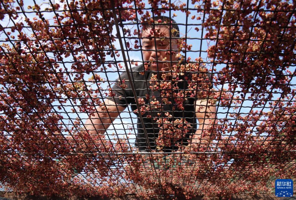 8月26日,秦皇島市海港區石門(mén)寨鎮南峪村的一位農民在篩選晾曬好的花椒。