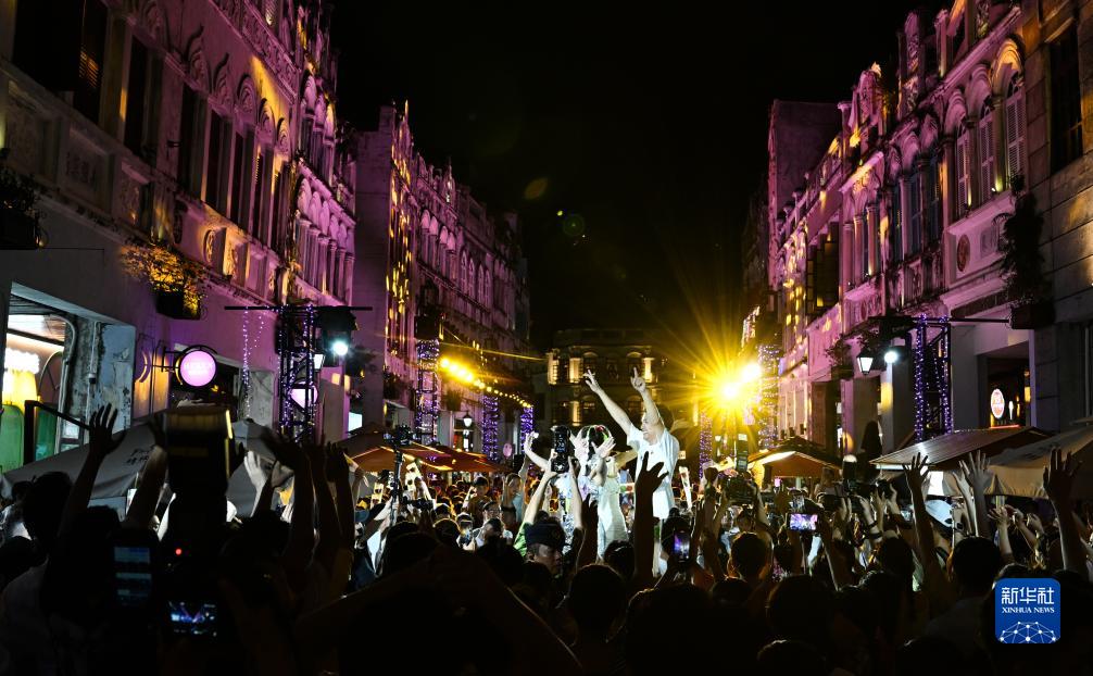 游客在??隍T樓老街觀(guān)看演出(8月22日攝)。