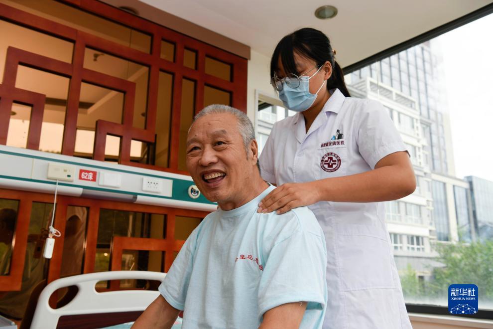 8月27日,在雙灤區一家醫養綜合體,理療師為老人推拿。