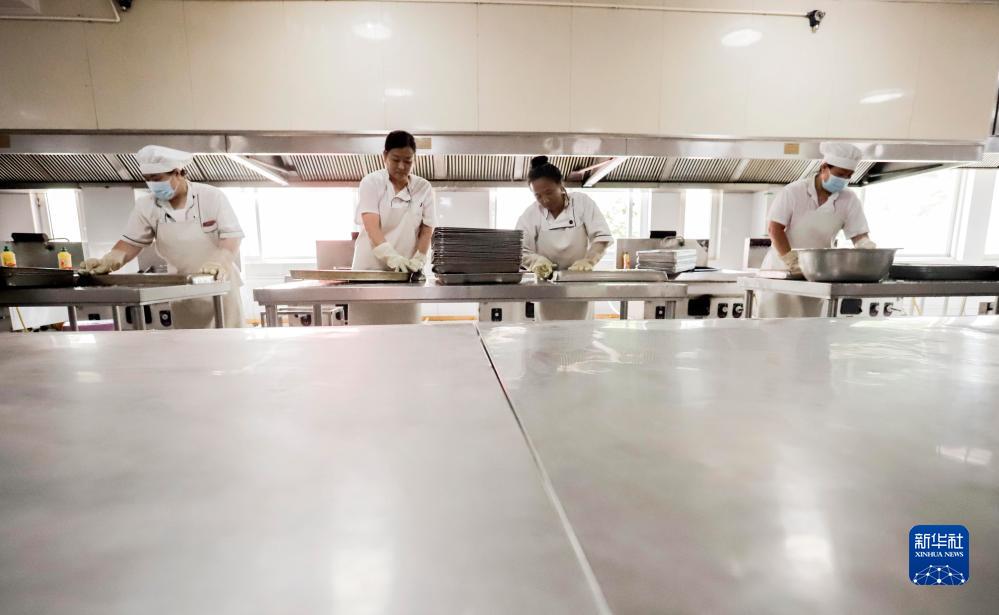 8月27日,河北省遵化市第三中學(xué)的廚師在打掃廚房衛生。