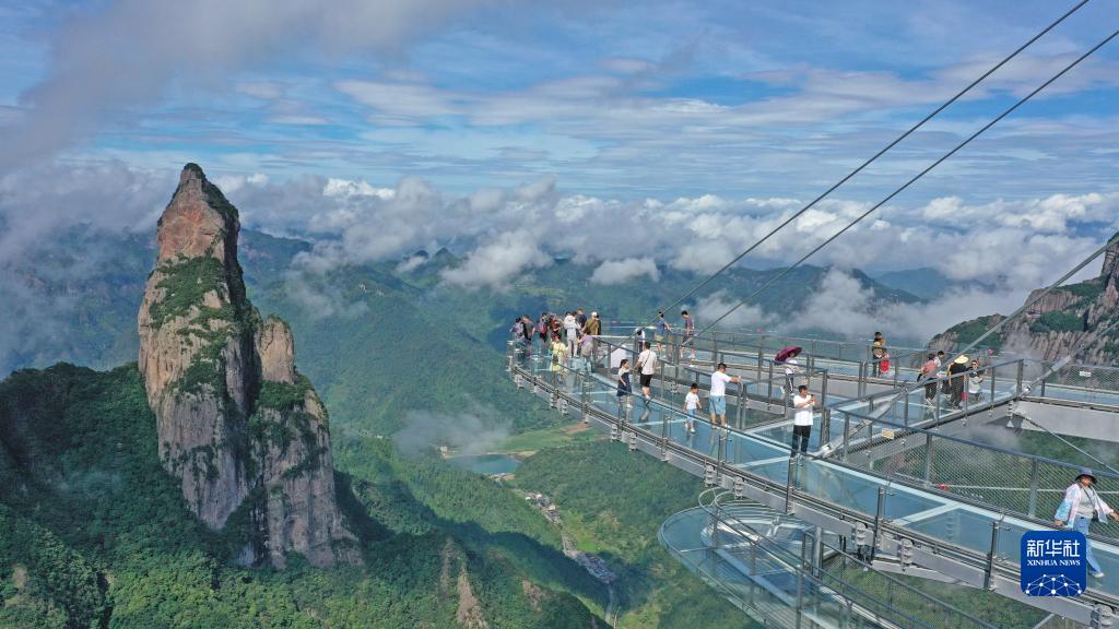 8月27日,學(xué)生和家長(cháng)在浙江省臺州市仙居縣神仙居景區游玩(無(wú)人機照片)。