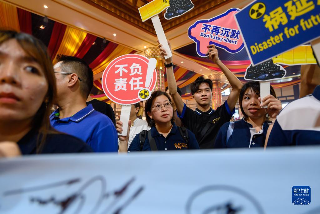 8月27日,在馬來(lái)西亞雪蘭莪州士毛月,人們參加反對日本核污染水排海的集會(huì )。