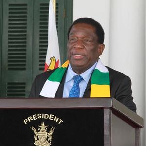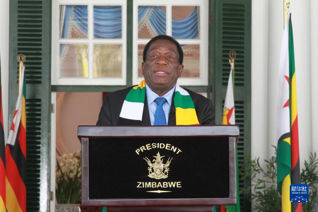 8月27日,在津巴布韋哈拉雷,姆南加古瓦被宣布獲得連任后向媒體發(fā)表講話(huà)。