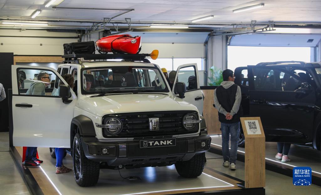 8月27日,在南非約翰內斯堡,參觀(guān)者在長(cháng)城展廳參觀(guān)展車(chē)。