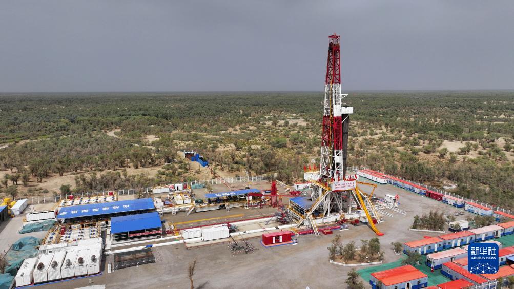 8月21日拍攝的中國石化塔里木盆地“深地工程”躍進(jìn)3-3XC油氣井。該井設計井深9472米,截至8月28日,鉆探深度已達8471米(無(wú)人機照片)。