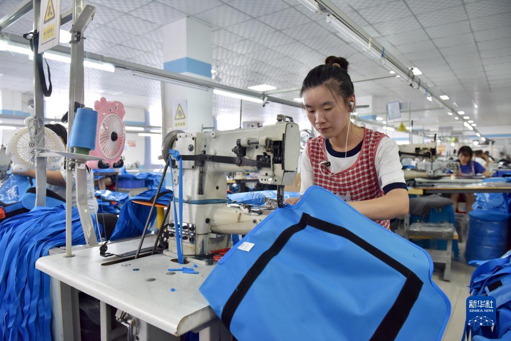 8月29日,工人在河北省威縣姜七里村一家箱包廠(chǎng)加工箱包。