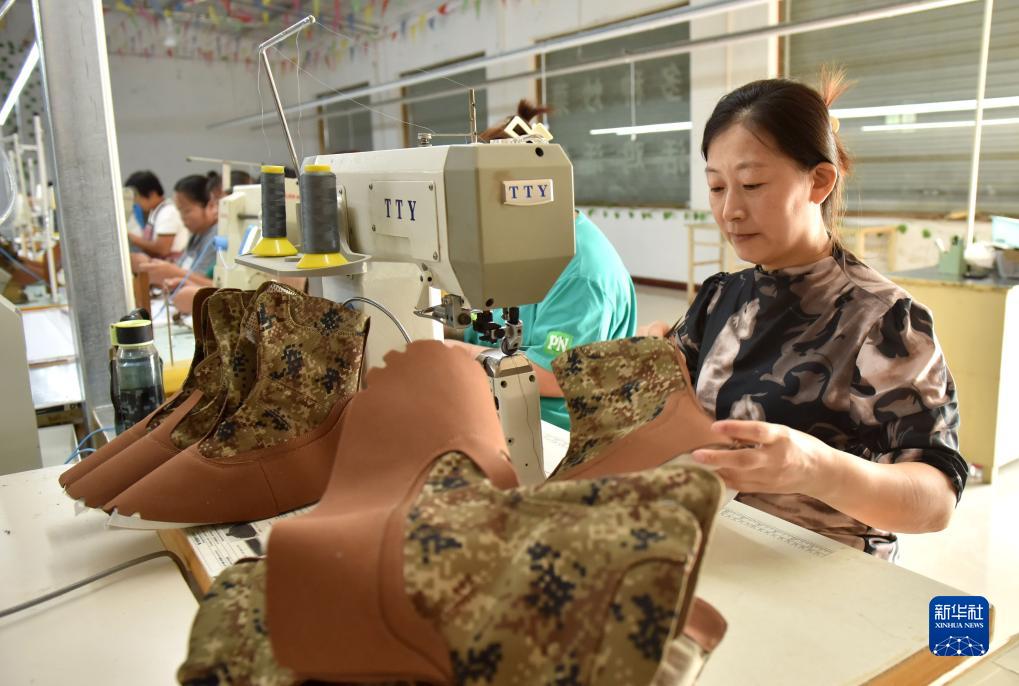 8月29日,工人在河北省威縣香花營(yíng)村一家制鞋廠(chǎng)生產(chǎn)車(chē)間工作。