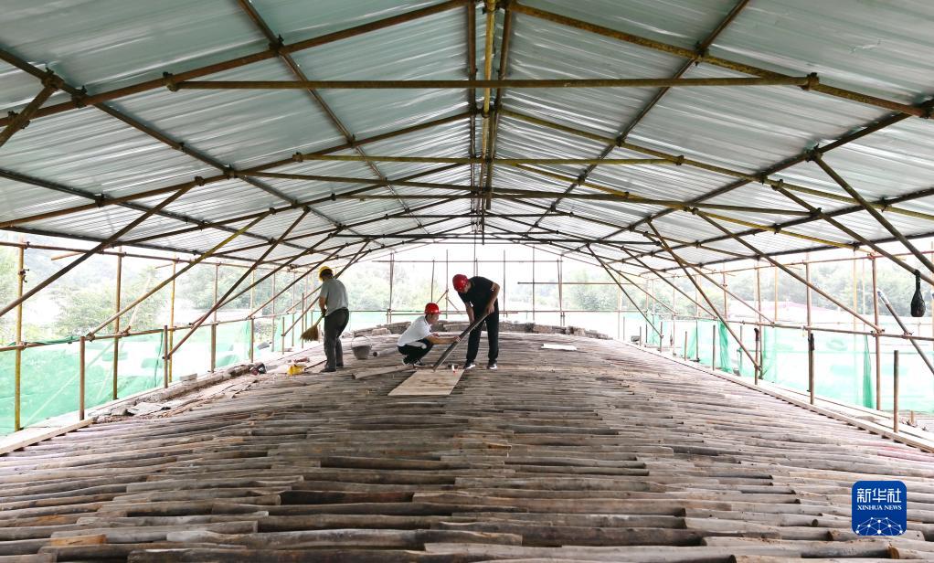 8月29日,工人在李大釗故居維修保護工程工地施工。
