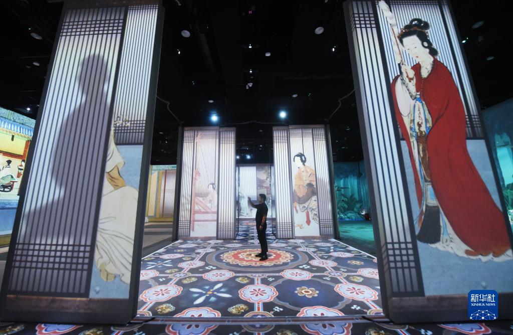 8月29日,參觀(guān)者在浙江省博物館新館的數字化展廳里觀(guān)展。