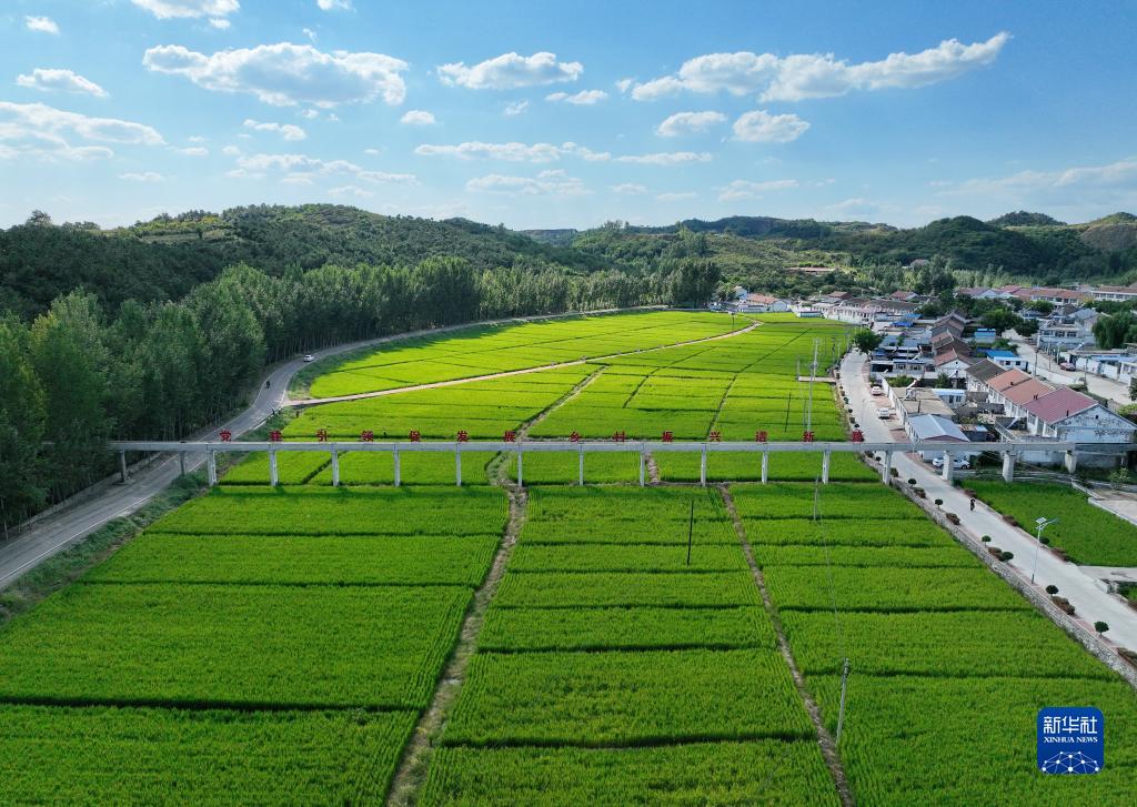 這是8月29日在河北省遷安市大崔莊鎮樓子山村拍攝的稻田(無(wú)人機照片)。