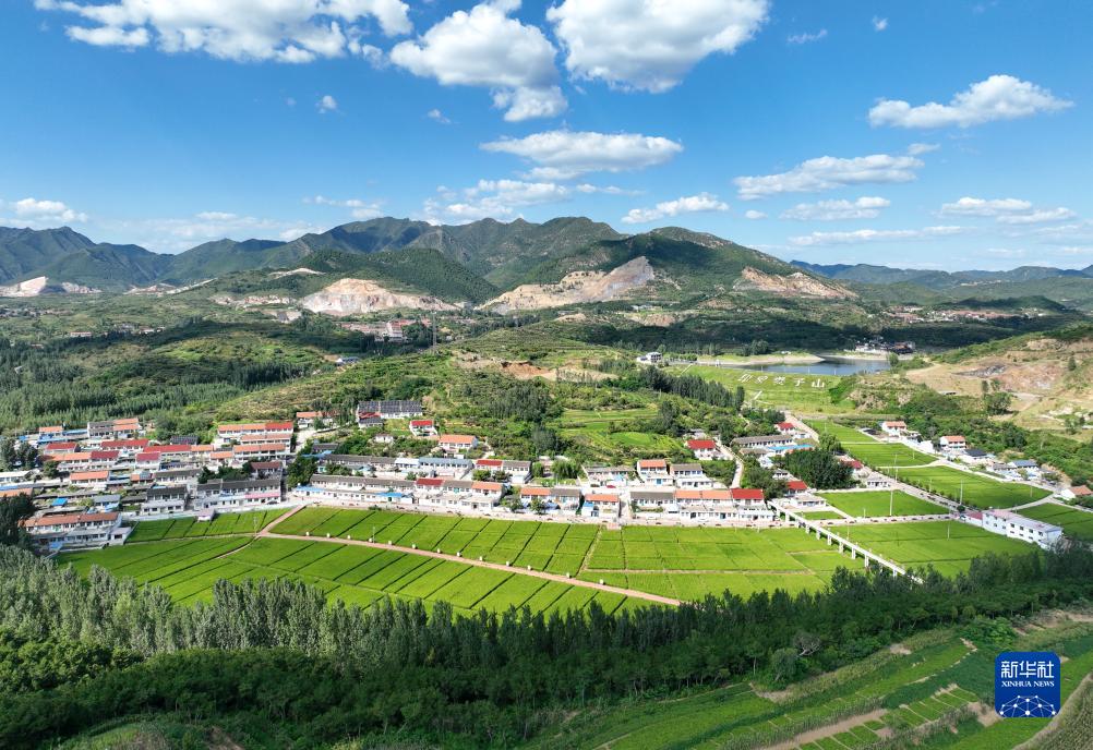 河北省遷安市大崔莊鎮樓子山村的稻田與青山、村莊相映成畫(huà)(8月29日攝,無(wú)人機照片)。