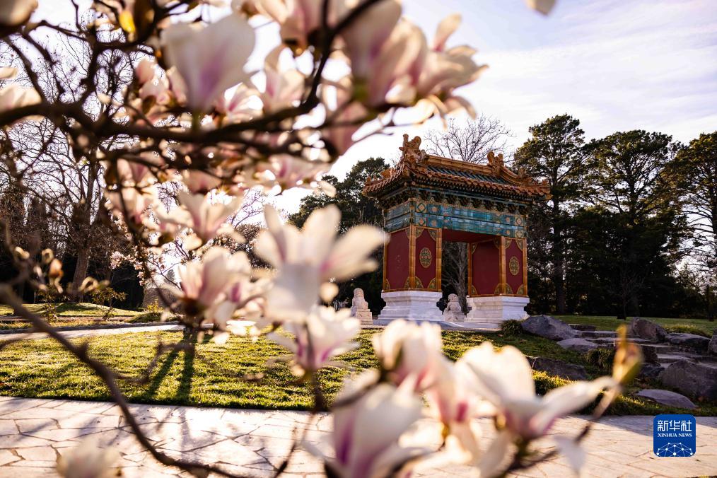 這是8月30日在澳大利亞堪培拉的北京花園拍攝的玉蘭花。