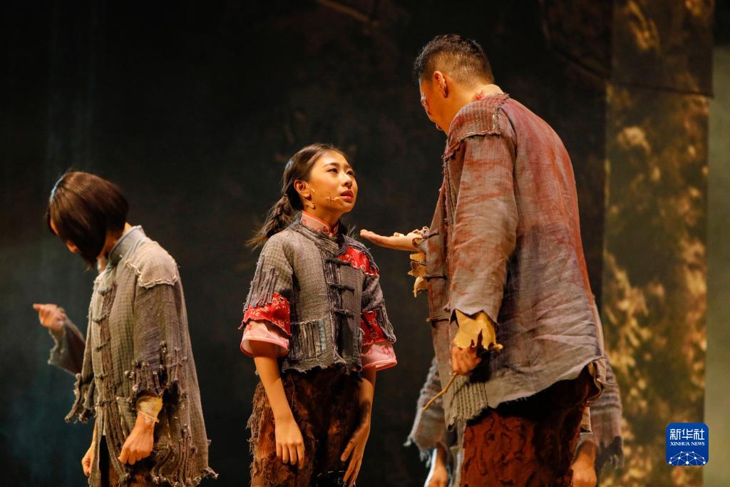 8月29日晚,演員在蘭州音樂(lè )廳表演新版紅色兒童劇《大豆謠》。