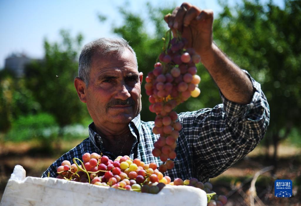 8月29日,在敘利亞大馬士革,農民收獲葡萄。