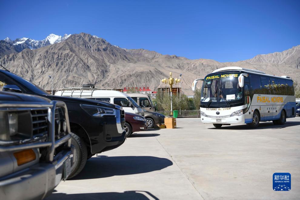 來(lái)自巴基斯坦的客車(chē)駛入新疆紅其拉甫口岸(8月29日攝)。