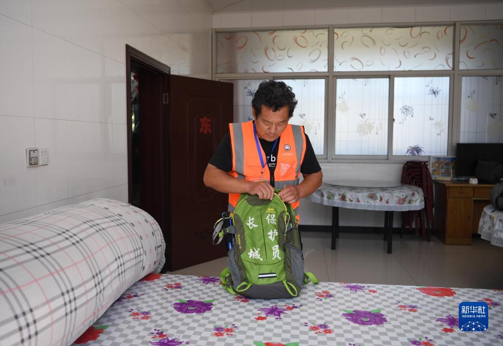 8月29日,俞海文在家中收拾巡查長(cháng)城所需裝備。