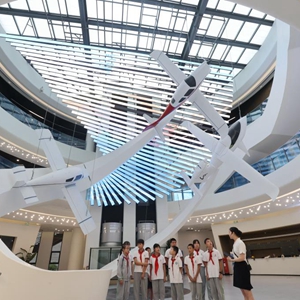 8月30日,在德清縣通航智造小鎮通用航空科普體驗館,雷甸鎮中心小學(xué)學(xué)生在參觀(guān)航空科普展品。