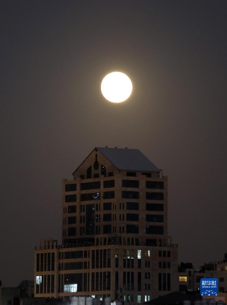 這是8月30日在納布盧斯拍攝的“超級月亮”。
