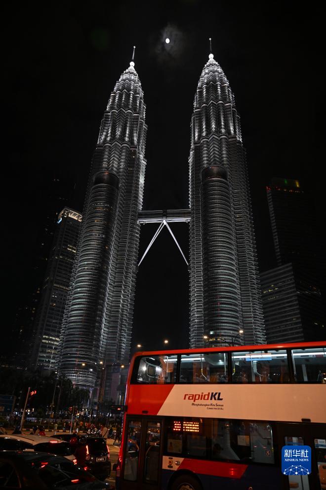 8月30日,“超級月亮”在馬來(lái)西亞吉隆坡雙子塔上空升起。