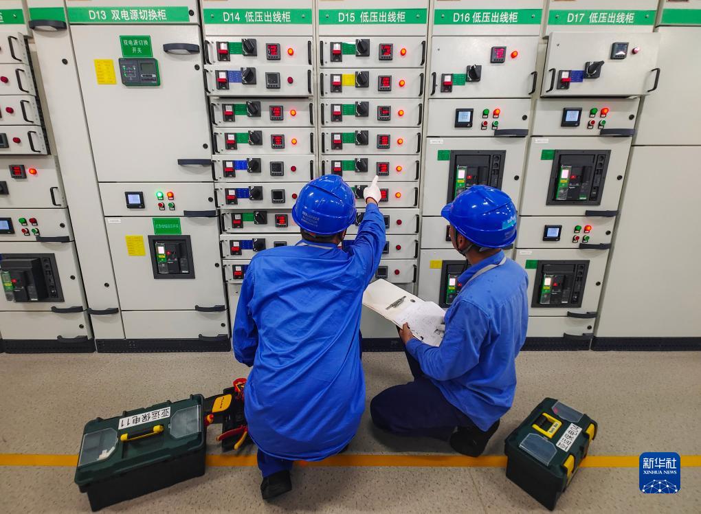 8月30日,浙江寧波象山縣供電公司員工在寧波象山亞帆中心配電房檢查供電情況。