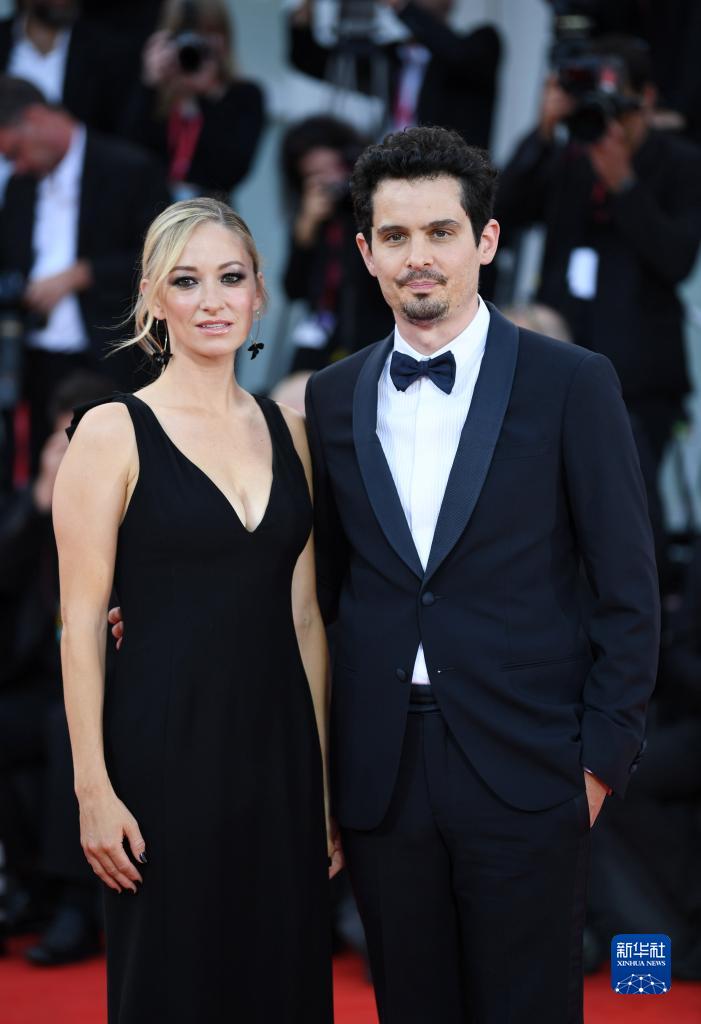 8月30日,在意大利威尼斯,主競賽單元評審團主席、導演達米安·沙澤勒(右)和演員奧利維婭·漢密爾頓亮相開(kāi)幕式紅毯。