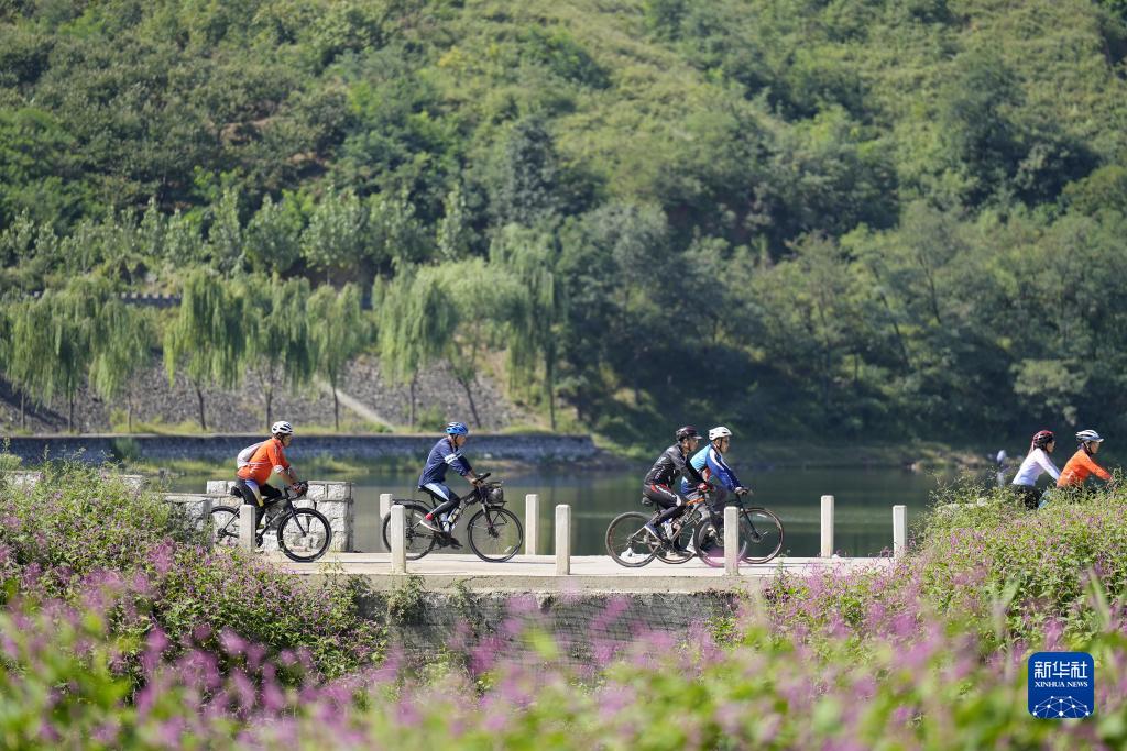 8月30日,騎行愛(ài)好者在河北唐山遷安市萬(wàn)寶溝村內騎行。該村依托長(cháng)城旅游資源打造成自行車(chē)運動(dòng)主題村。