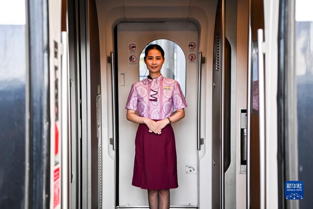 8月31日,工作人員在由南寧東開(kāi)往貴陽(yáng)北的G4308次列車(chē)上等候乘客上車(chē)。