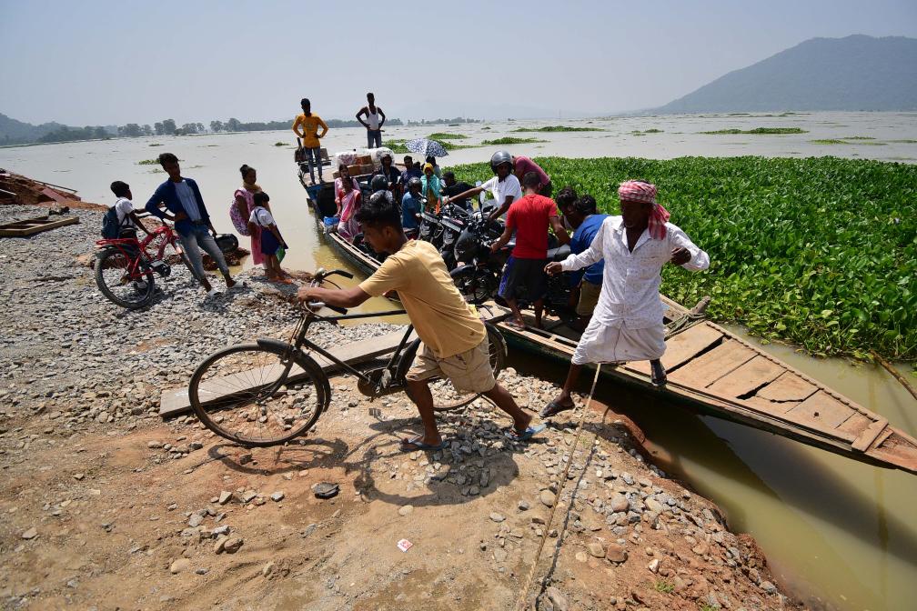 8月30日,人們在印度東北部阿薩姆邦一處洪災區域乘船出行。