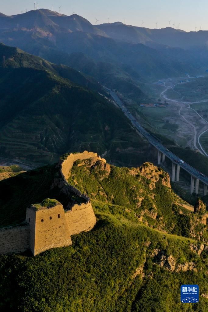這是8月30日拍攝的新廣武—白草口段長(cháng)城(無(wú)人機照片)。
