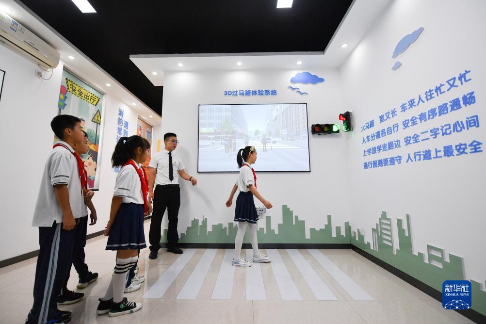 8月31日,在西安市鄠邑區新區小學(xué),老師對學(xué)生進(jìn)行道路安全教育。