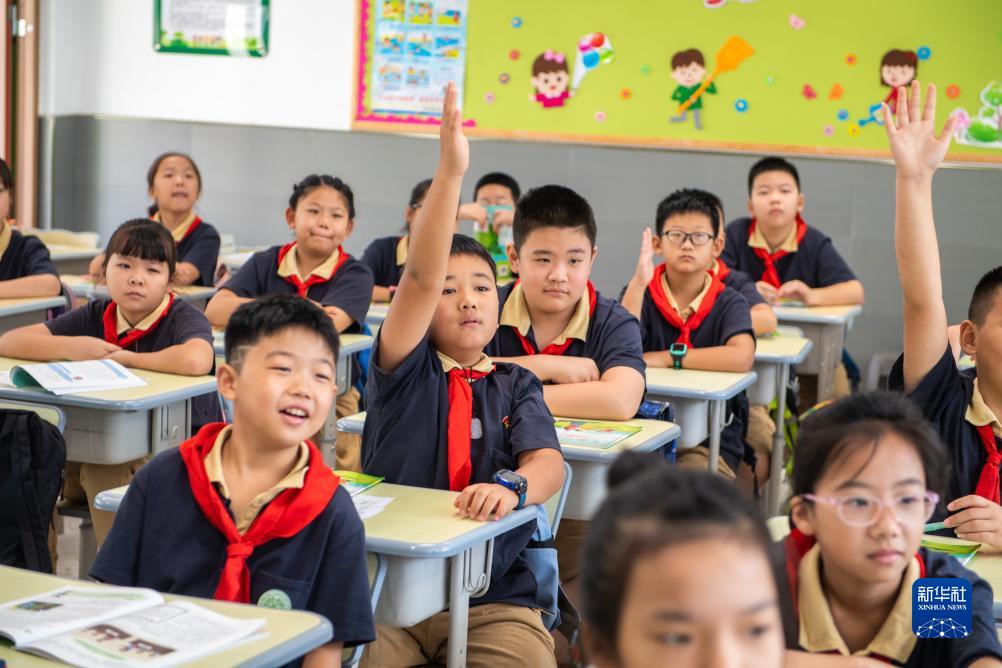 8月31日,湖南省常德市市場(chǎng)監督管理局在常德市武陵區第三小學(xué)開(kāi)展關(guān)于食品安全的“開(kāi)學(xué)第一課”。這是學(xué)生舉手發(fā)言。