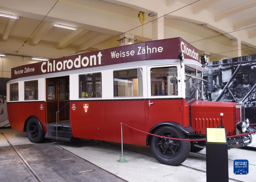 這是8月30日在奧地利維也納交通博物館拍攝的20世紀使用的城市公交車(chē)。