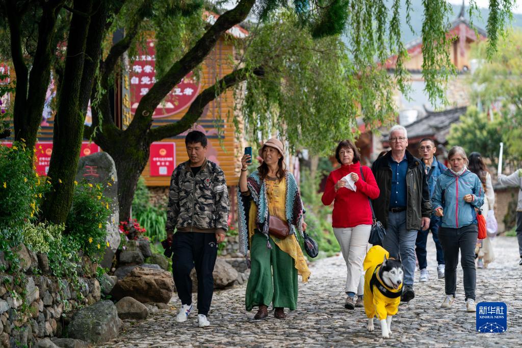 中外游客在玉湖村觀(guān)光游玩(8月28日攝)。