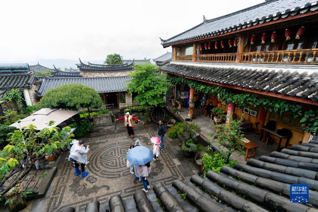 麗江市玉龍納西族自治縣白沙鎮玉湖村村民和杰林在自家的納西文化體驗館為游客介紹納西族建筑文化(8月28日攝)。