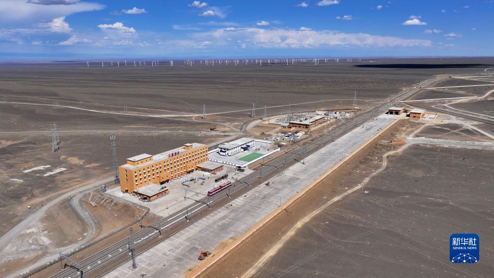 這是8月25日拍攝的將淖鐵路三塘湖站(無(wú)人機照片)。