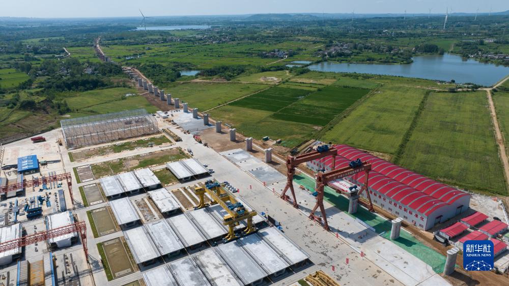 8月31日拍攝的滬渝蓉高鐵滬寧段箱梁吊裝施工現場(chǎng)(無(wú)人機照片)。